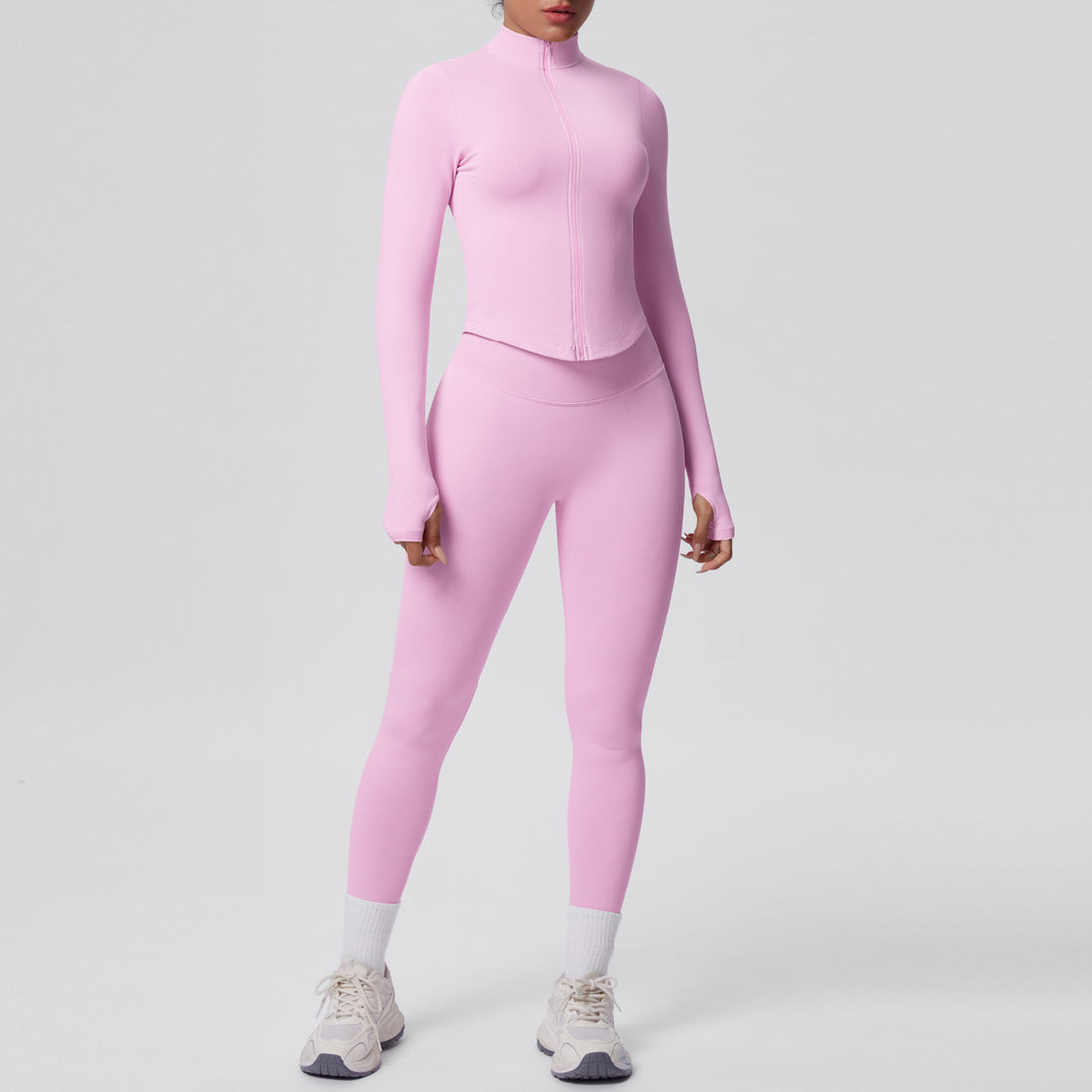 Product Description Elevate your fall/winter activewear with the Sensein Ribbed Zip-Up Yoga Set, designed for...