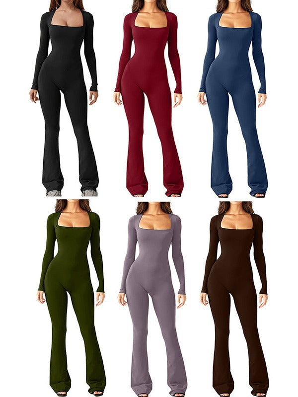 - Design: Square neck, long sleeves, cinched waist, and flared legs — sculpts your figure while keeping movement unrestricted.